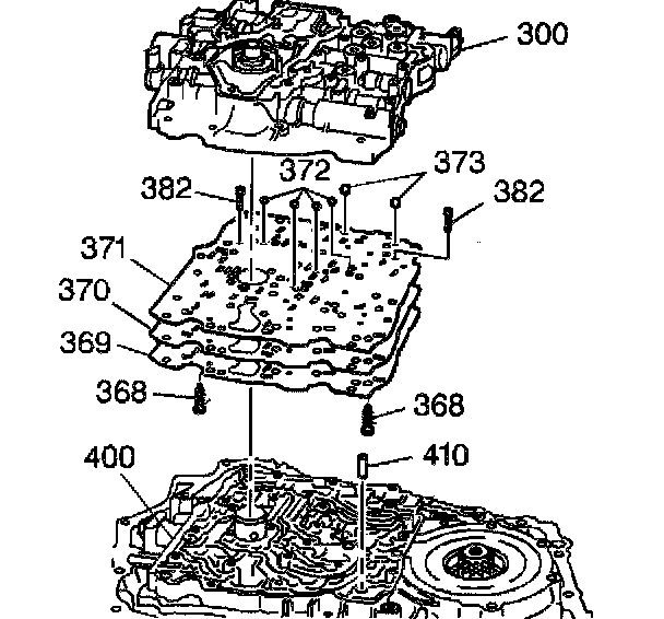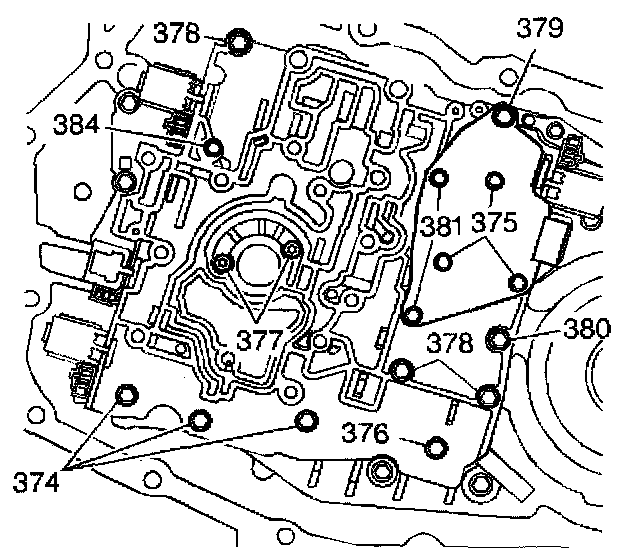Control Valve Body and Spacer Plate Disassemble1. Remove the indicated control valve body bolts (374-381, 384).