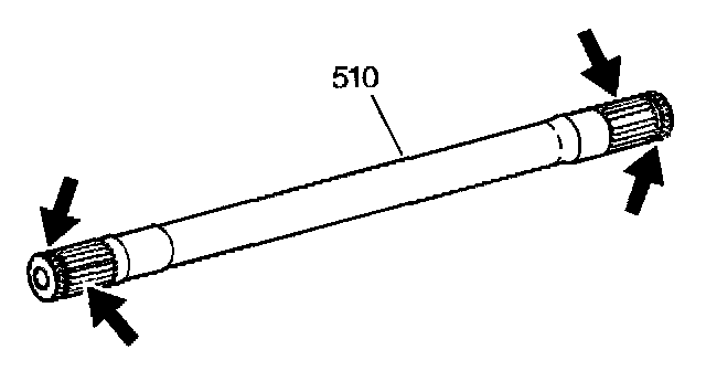 4. Carefully install the output shaft (510) into the transmission. Extend the shaft through the differential side gear.