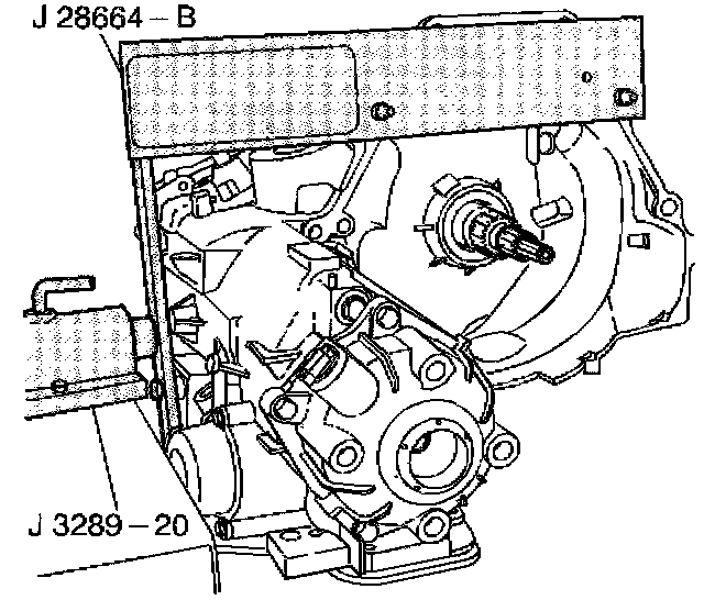 2. Remove the transmission and J 28664-B from J 3289-20.