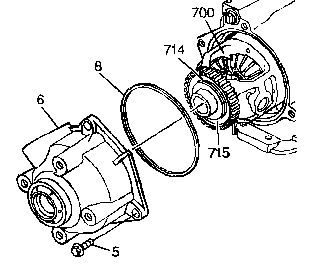 2. Make sure that the thrust washer (714) and the bearing (715) are still on the differential carrier.
