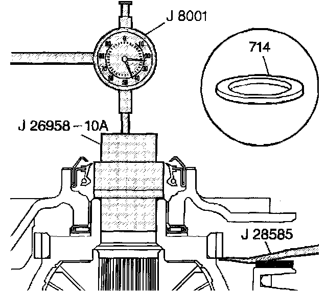 10. Note the dial indicator reading before changing the carrier thrust washer (714).