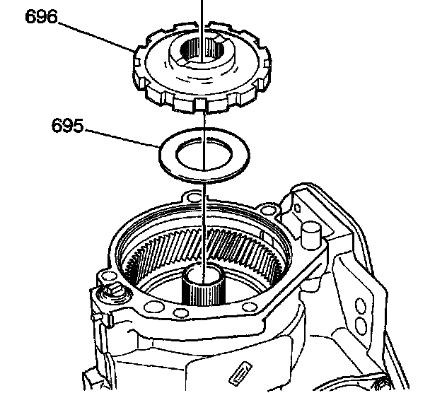 19. Remove the parking gear (696) and the parking gear thrust bearing (695).