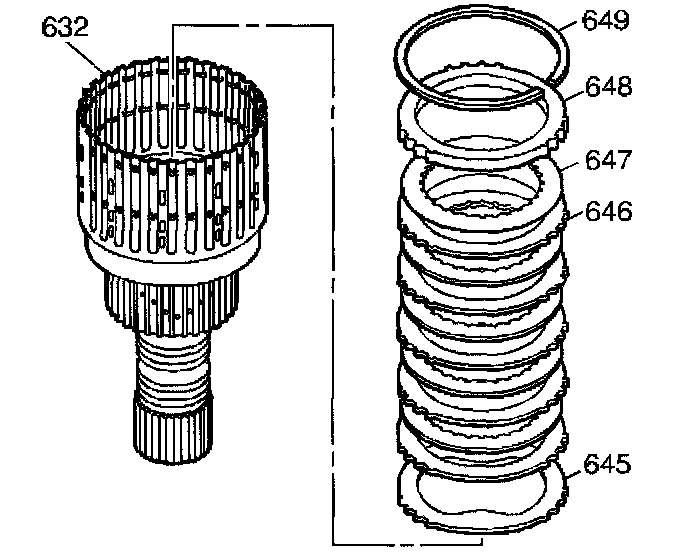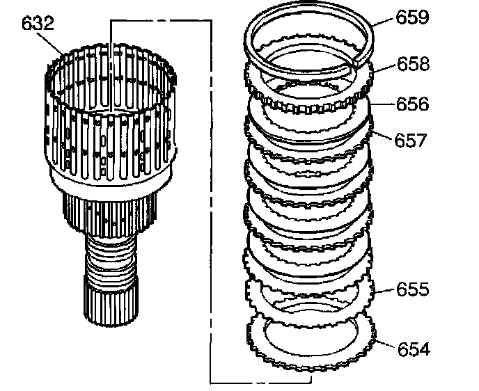 3. Remove all of the input clutch plate assemblies (656, 657).