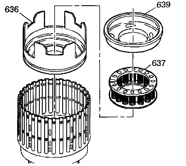 13. Remove the third clutch retainer and guide spring assembly (643).