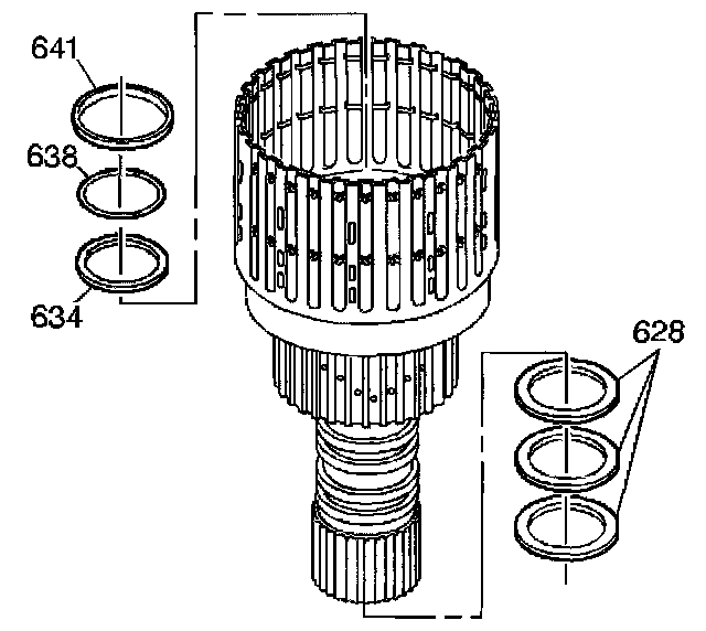 23. Remove the third clutch housing O-ring seal (638).