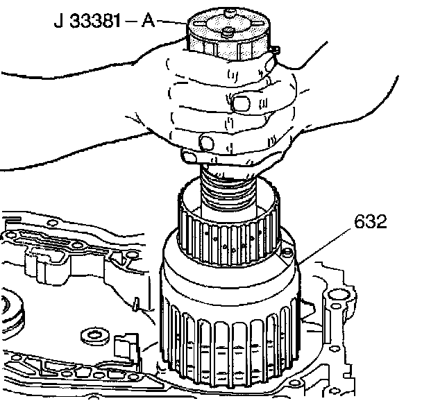 2. Install J 33381 -A into the input clutch housing assembly (632).