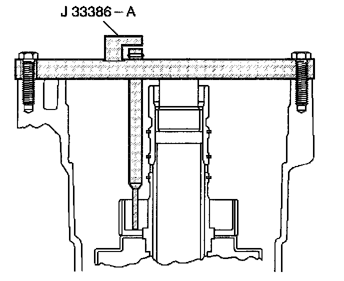 16. Tighten the threaded rod of J 33381-A until the rod is finger tight.