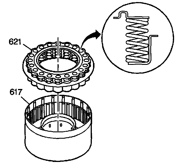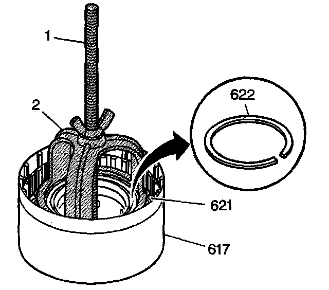 8. Install the second clutch spring assembly retainer ring (622).