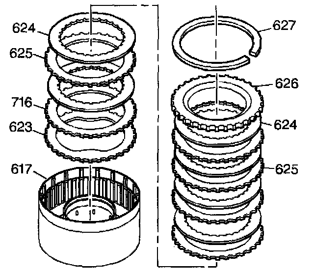 10. Install the second clutch waved plate (623) into the second clutch housing (617).