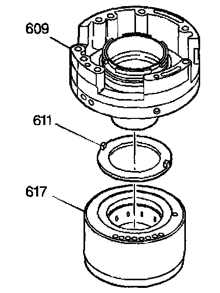 4. When the clutches apply and hold correctly, remove the driven sprocket support assembly (609) and the second clutch housing thrust washer (611) from the second clutch housing assembly (617).