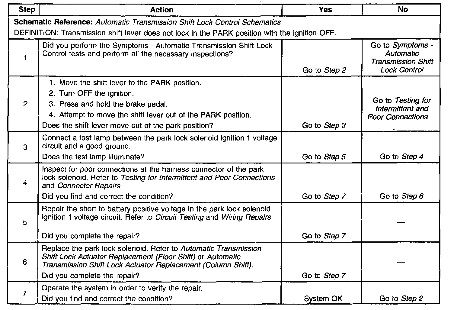 Park Lock Solenoid Inoperative