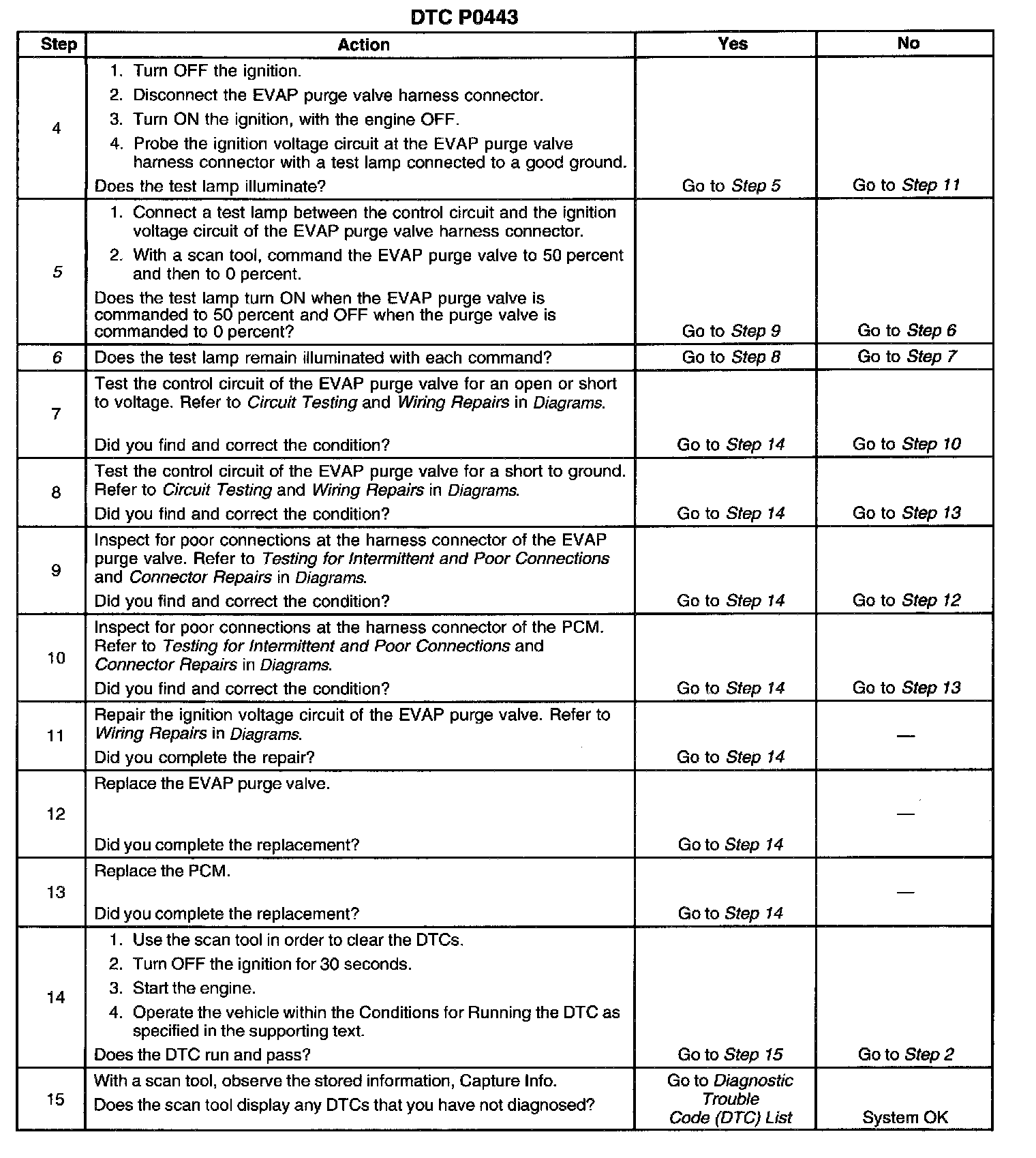 6. This step tests if a ground is constantly being applied to the EVAP purge valve.