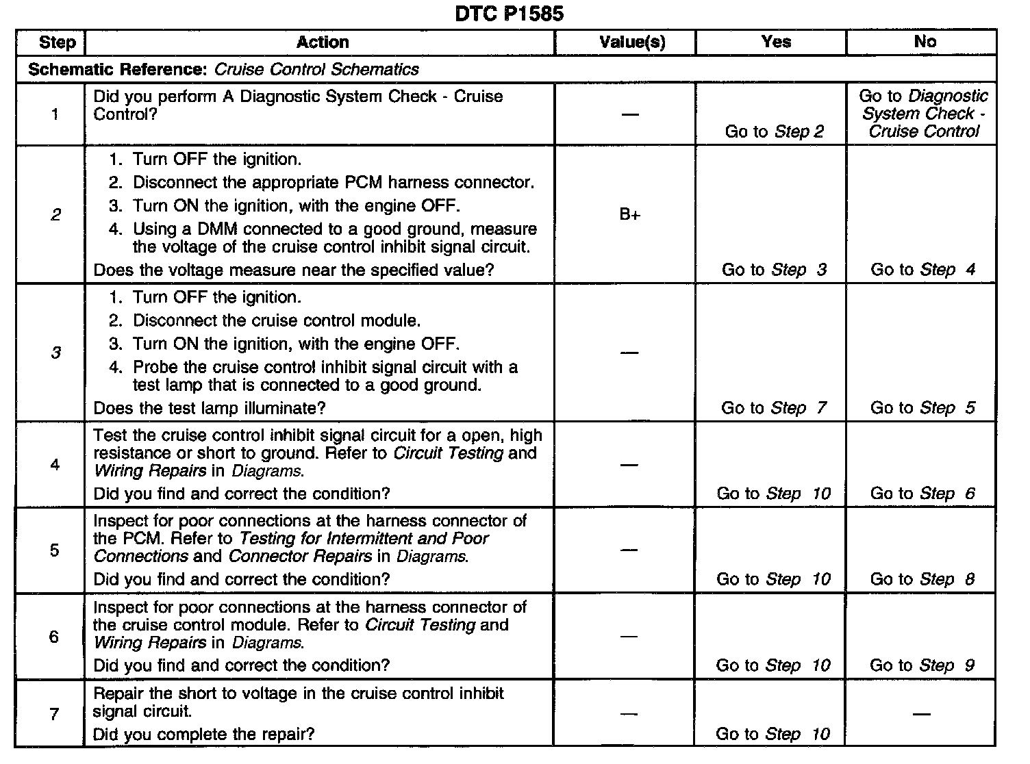 ^ The PCM detects an improper voltage level on the cruise inhibit signal circuit.