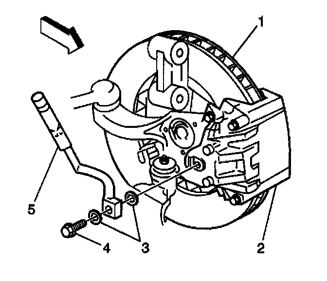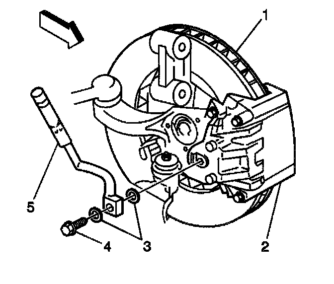 8. Remove the brake hose (5) from the brake caliper (2).