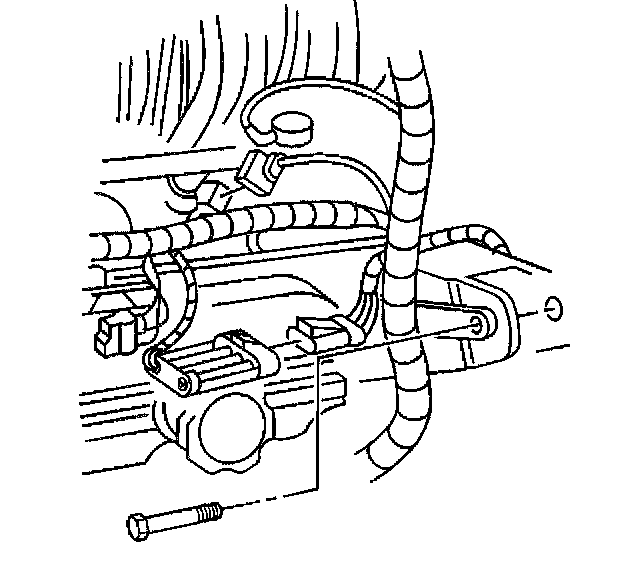 Important: The p-clip on the engine wiring harness must be vertical, as shown, to the left engine mount strut bracket when installed.
