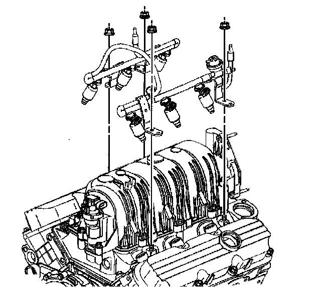 6. Remove the fuel injector rail nuts.