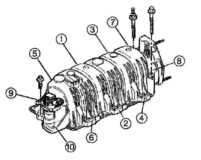 - Tighten the upper intake manifold bolts in sequence to 10 Nm (89 inch lbs.).