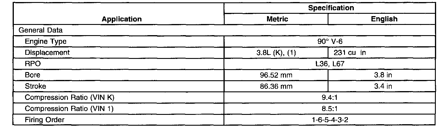 General Engine Data/Specifications