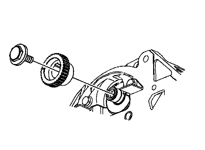 - Tighten the camshaft sprocket bolt to 100 Nm (74 ft. lbs.). Use the J 36660-A in order to rotate the bolts an additional 90 degrees.