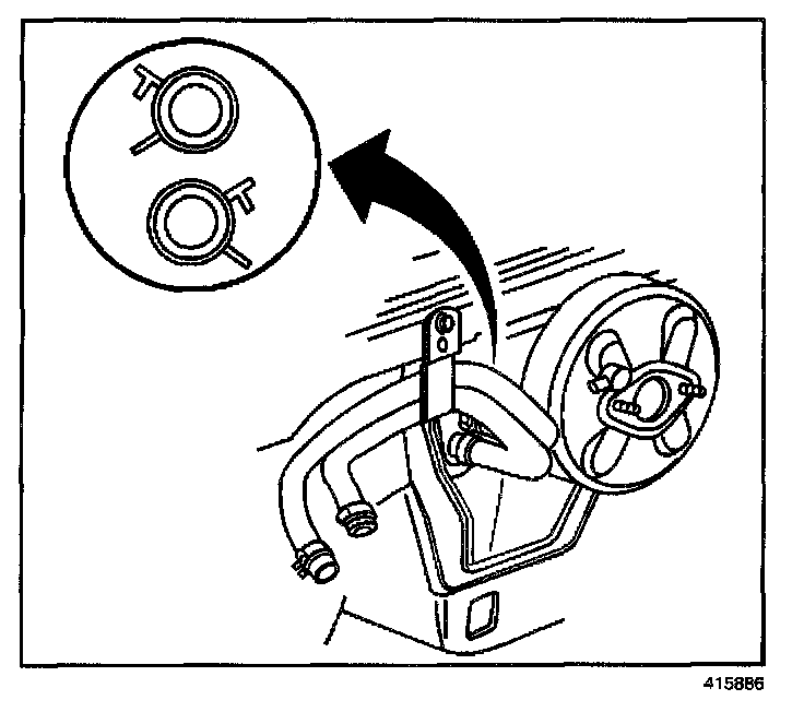8. Separate the support bracket and remove the heater inlet hose and/or the outlet hose.