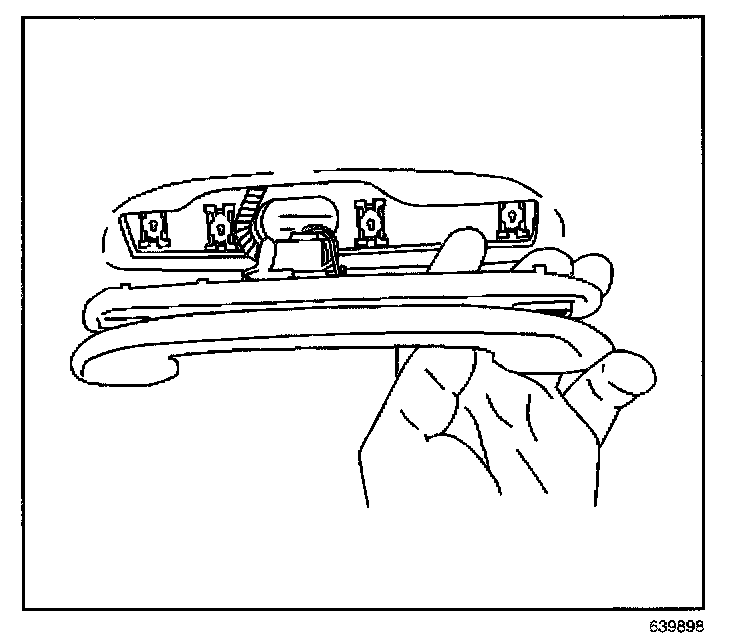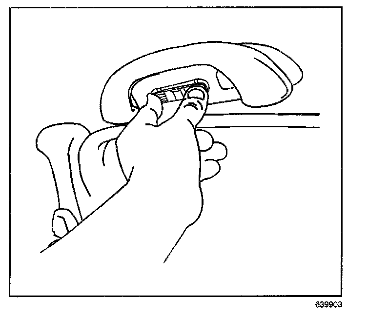 1. Remove the side rail lamp lens from the assist handle using a small flat-bladed tool.