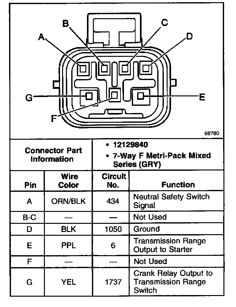 Transmission Range Switch C1 Connector, Wiring Harness Side