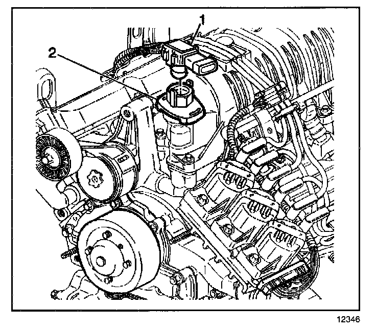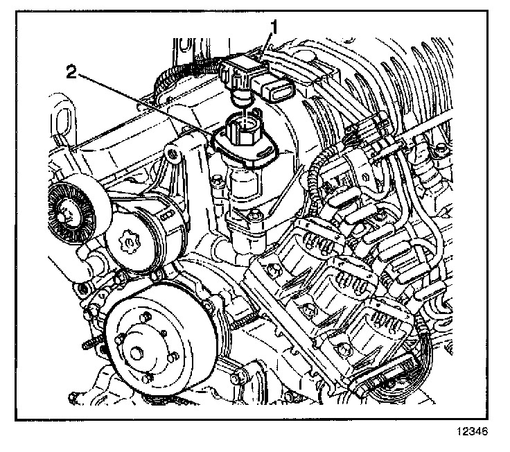 4. Carefully release the locking tabs holding the MAP (1) sensor to the PCV valve cover (2) just enough to remove the MAP sensor.