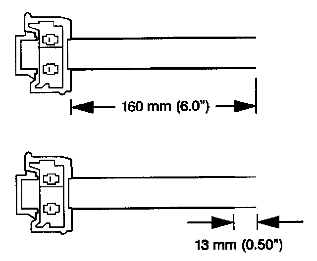 7. Strip 13 mm (0.5 in) of insulation from each of the connector wire leads.