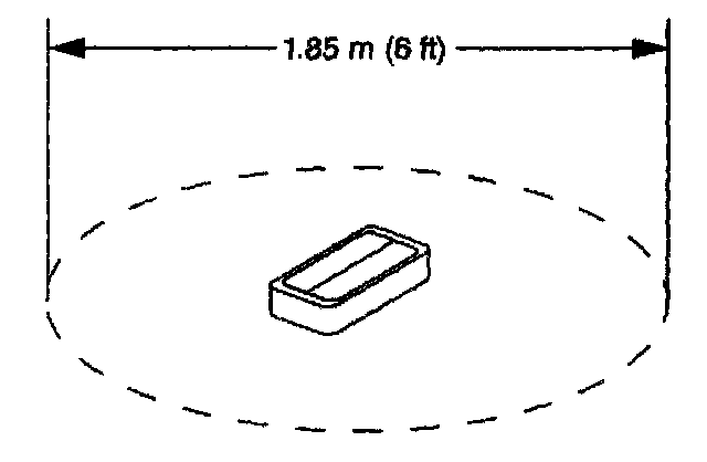6. Clear a space on the ground about 1.85 m (6 ft) in diameter for deployment of the inflator module. If possible, use a paved, outdoor location free of activity. Otherwise, use a space free of activity on the shop floor. Make sure you have sufficient ventilation.