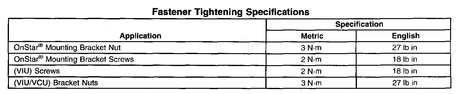 Fastener Tightening Specifications: