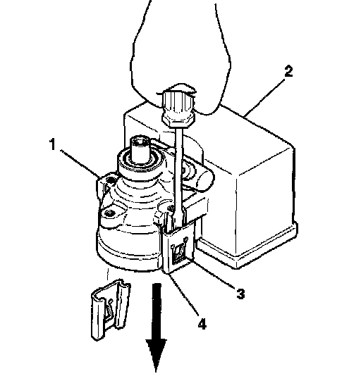 3. Using the screwdriver, force the retaining clip tab (3) outward.