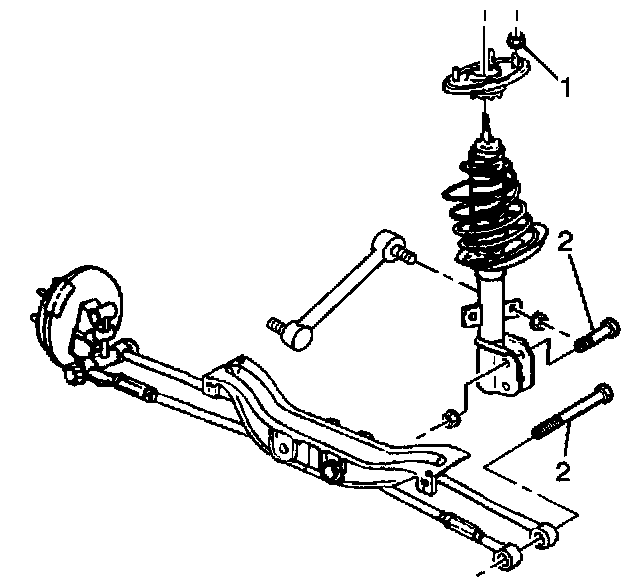 1. Remove the three strut-to-body mount nuts (1).