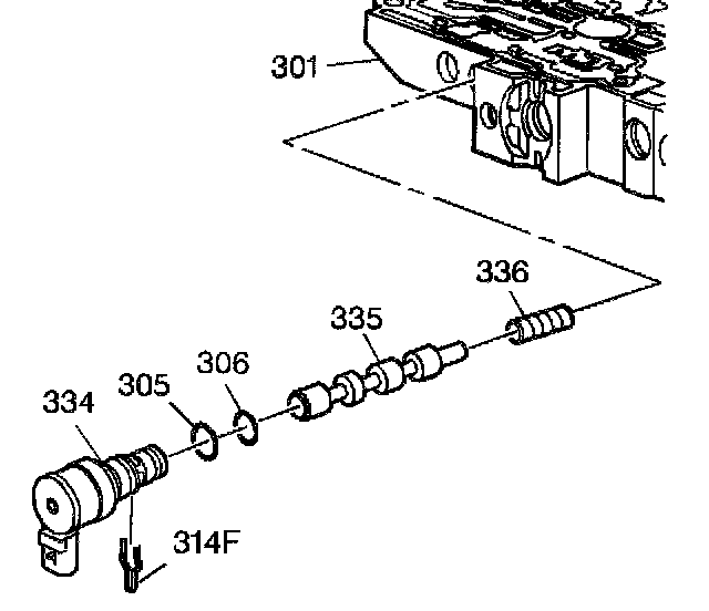 20. Install new O-ring seals (305, 306) onto the TCC PWM solenoid valve (334) if they had been removed.