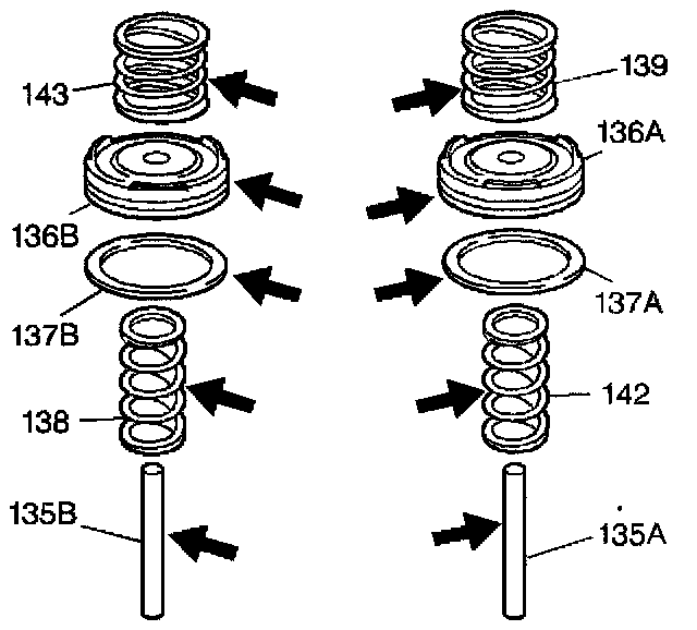 ^ Broken or collapsed piston outer springs (138, 142)