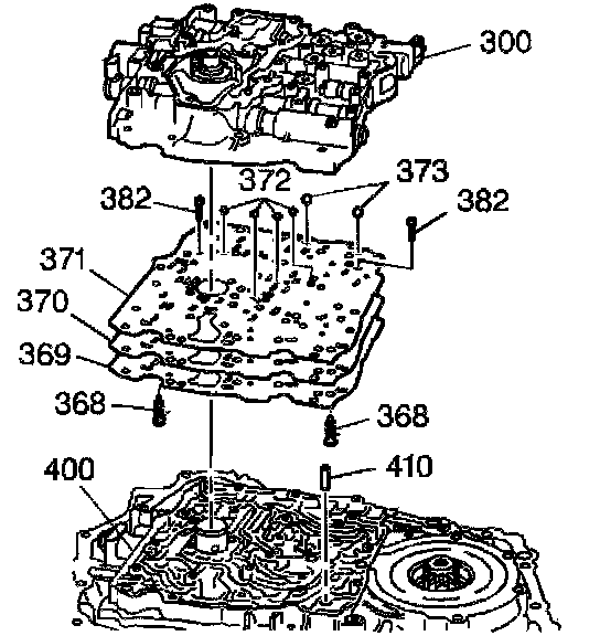 3. Remove the valve body bolts (374-381 and 384).