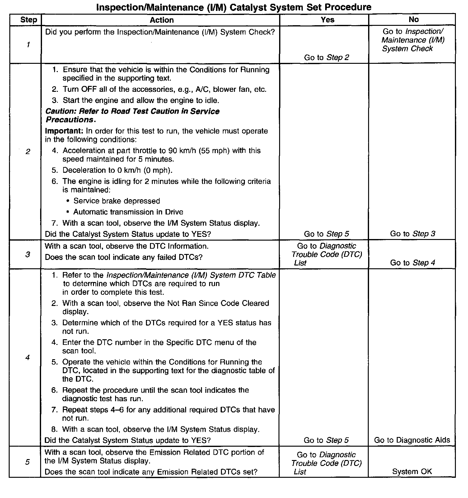 1. Perform the I/M System Check before performing this test. Failure to do so may result in difficulty updating the status to YES. Inspection/Maintenance (I/M) System Check