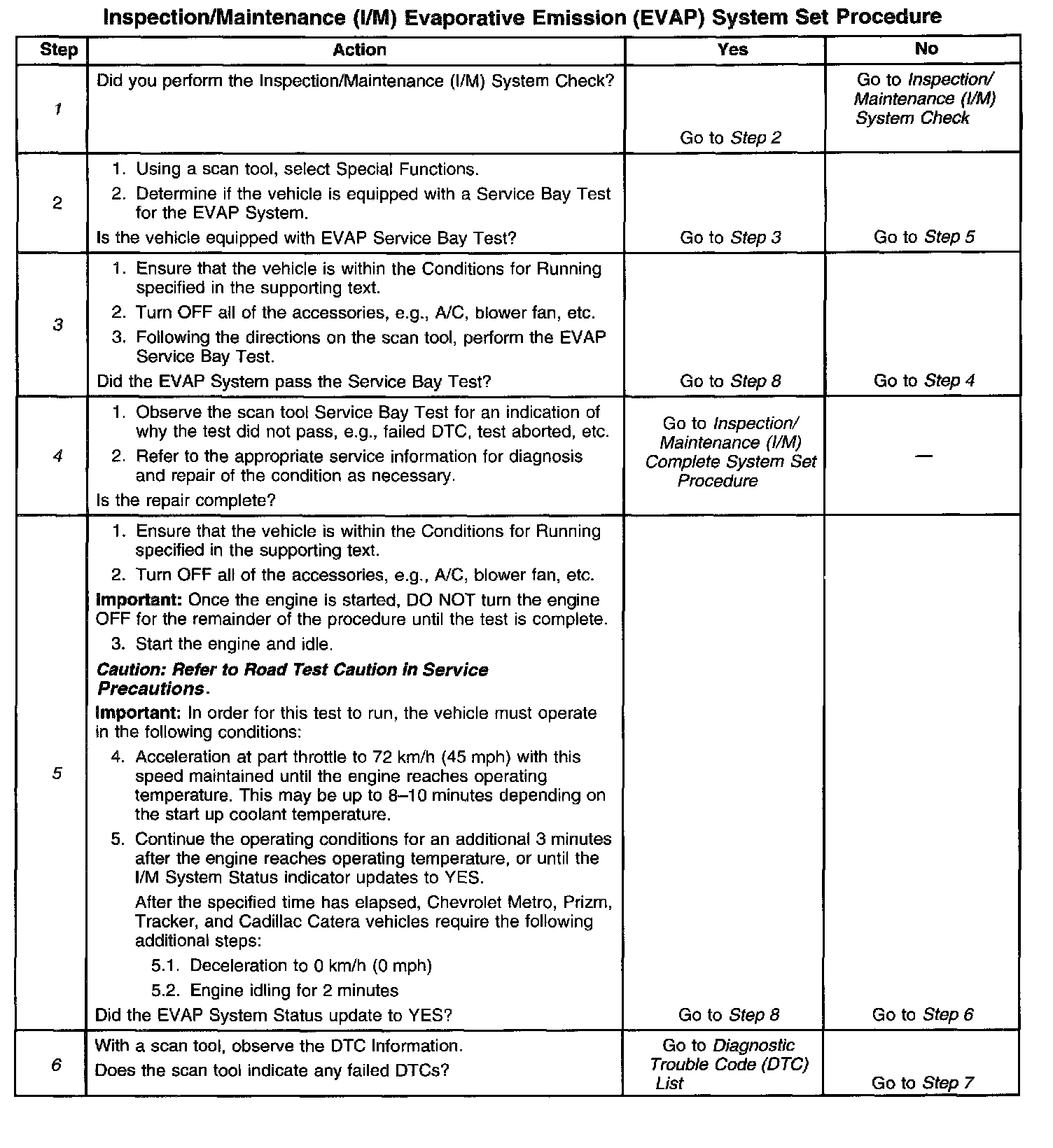 1. Perform the I/M System Check before performing this test. Failure to do so may result in difficulty updating the status to YES. Inspection/Maintenance (I/M) System Check