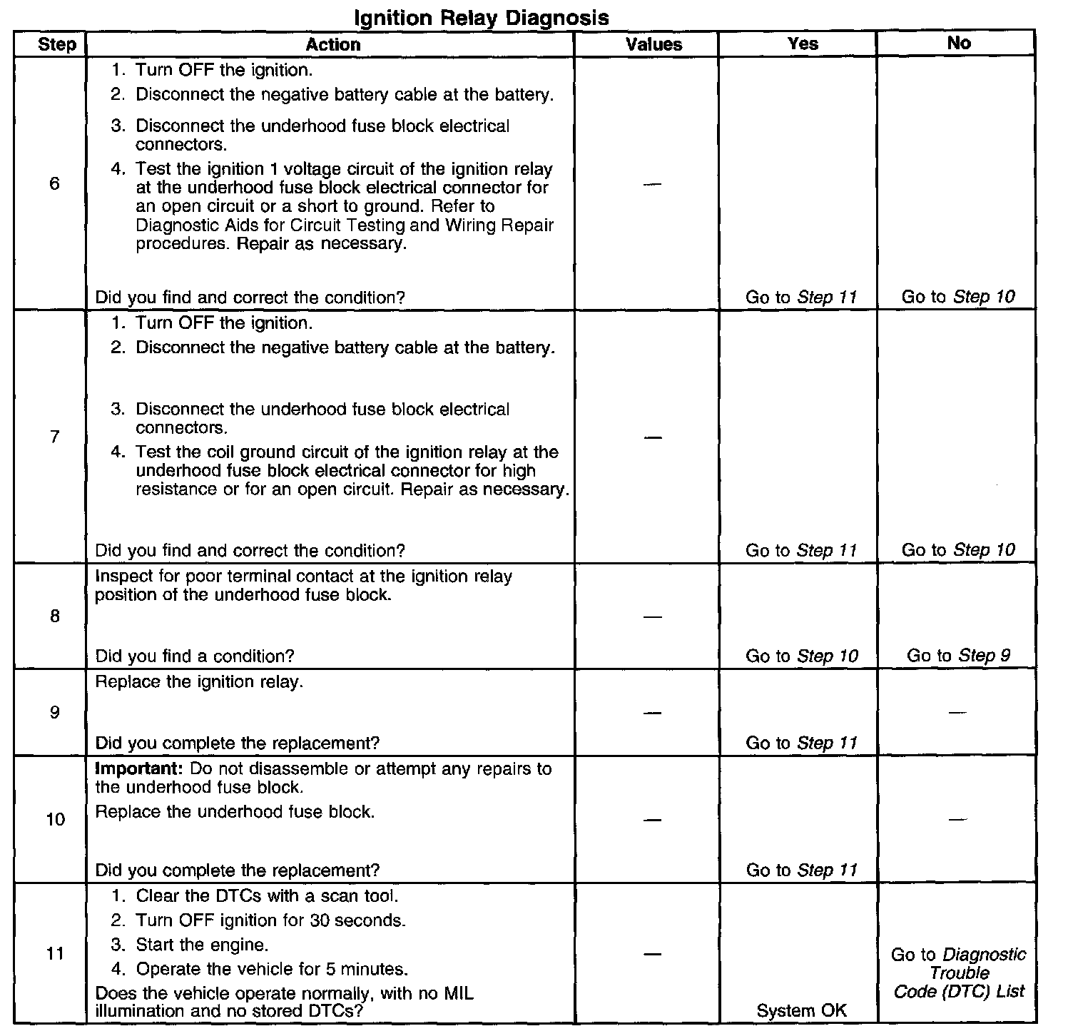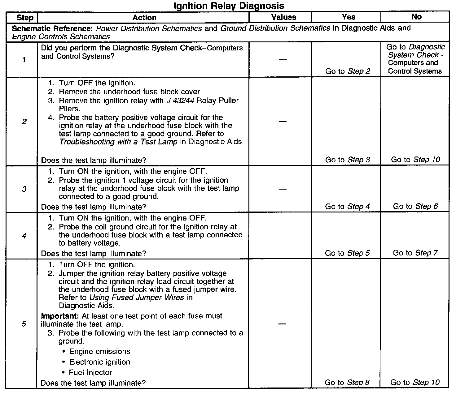 5. This step isolates the circuit from the ignition relay. All of the circuits at the relay are good if the test lamp illuminates.