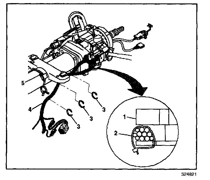 3. Remove the wire harness assembly (4) out of the wire harness strap (5).