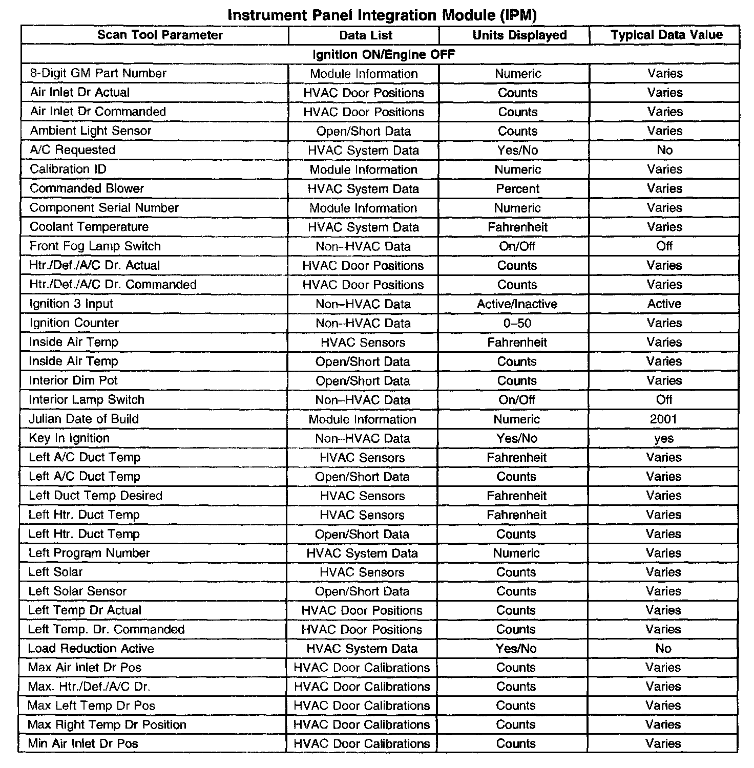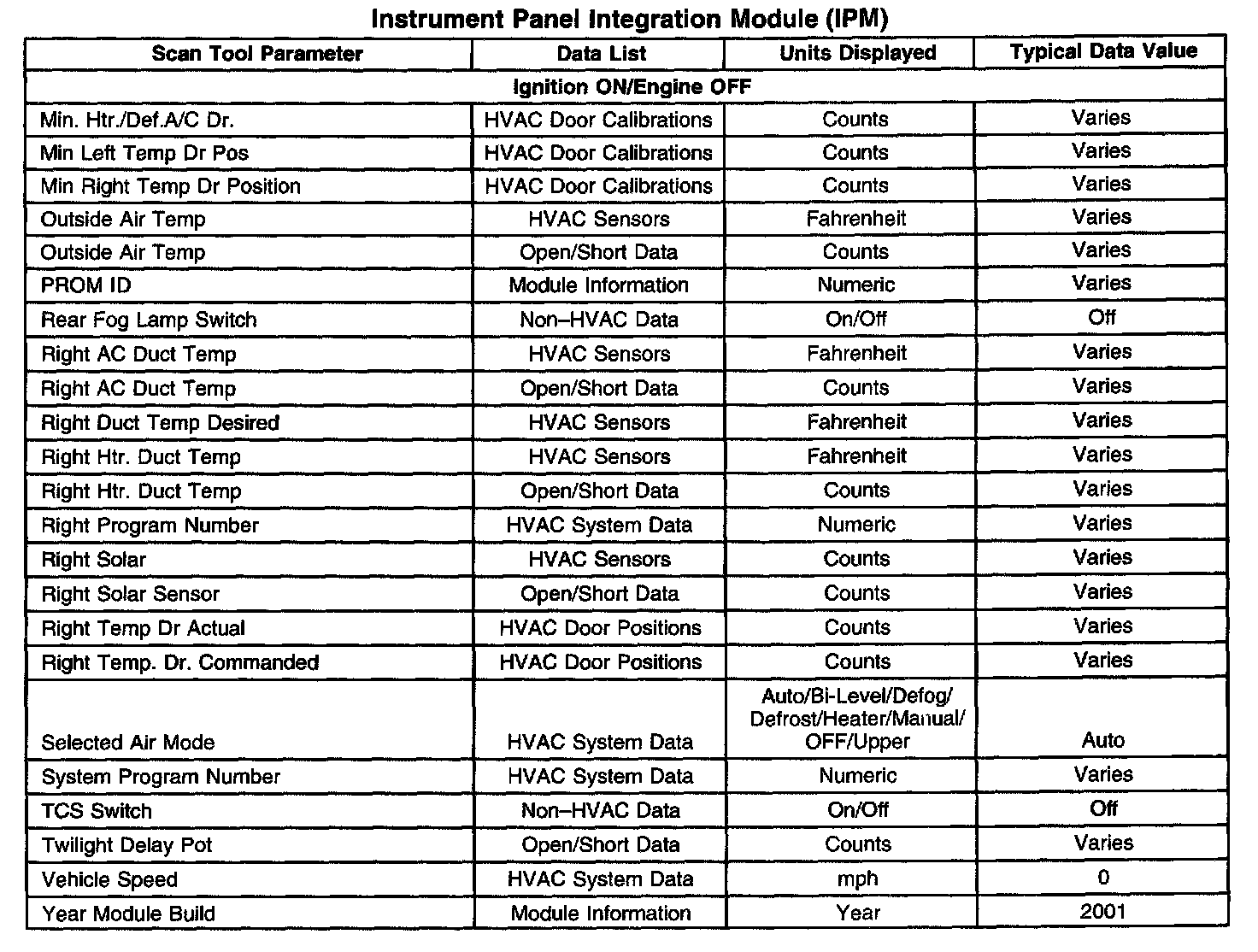 Scan Tool Data List - Instrument Panel Integration Module (IPM)