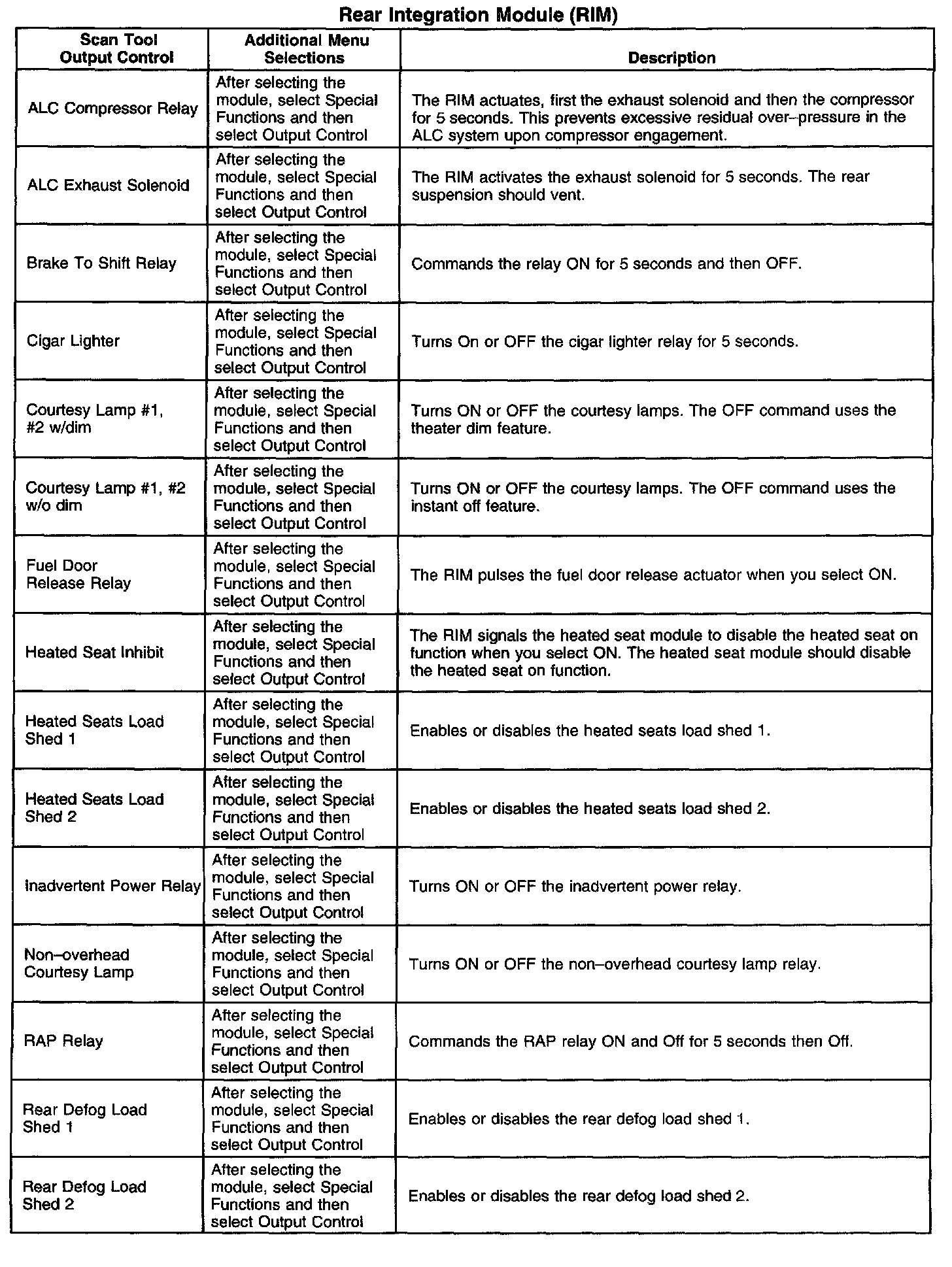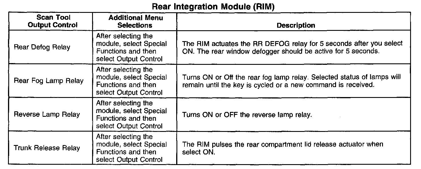 Scan Tool Output Controls - Rear Integration Module (RIM)