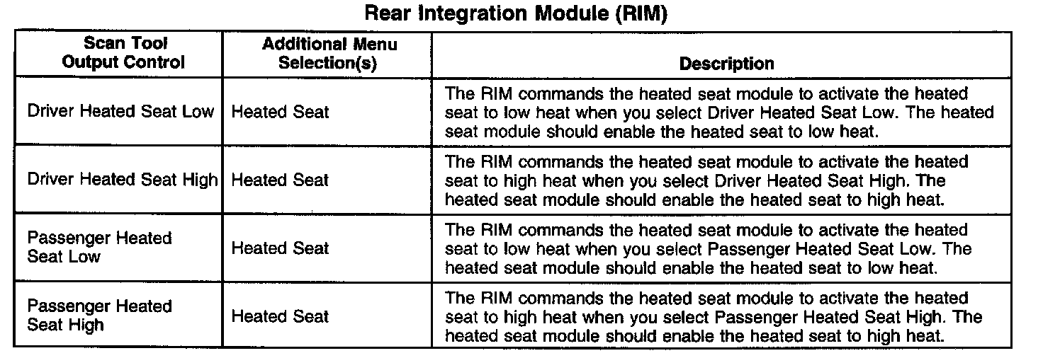 Scan Tool Output Controls - Rear Integration Module (RIM)