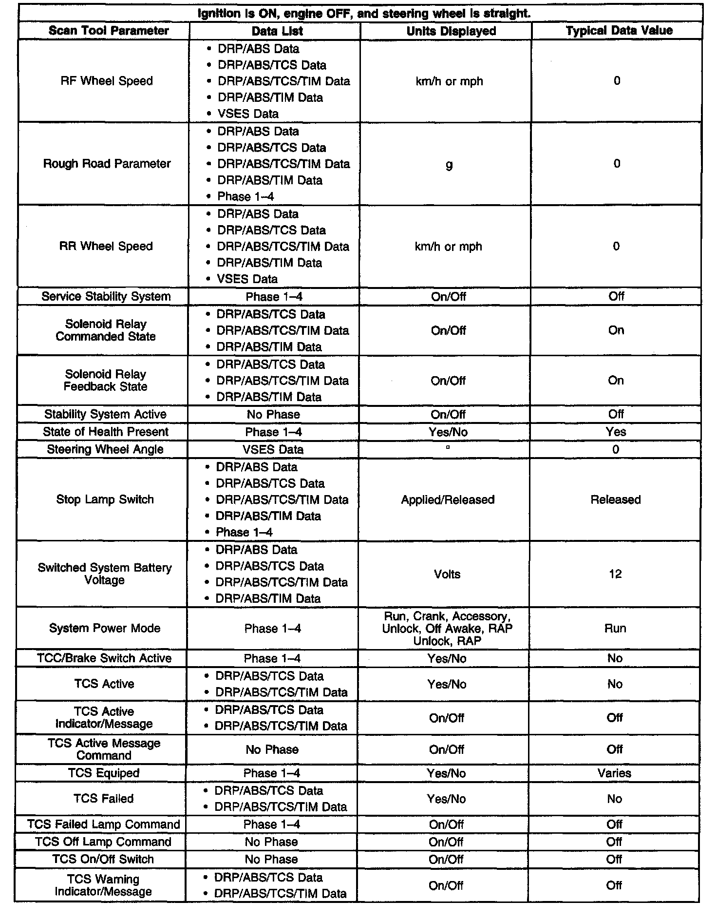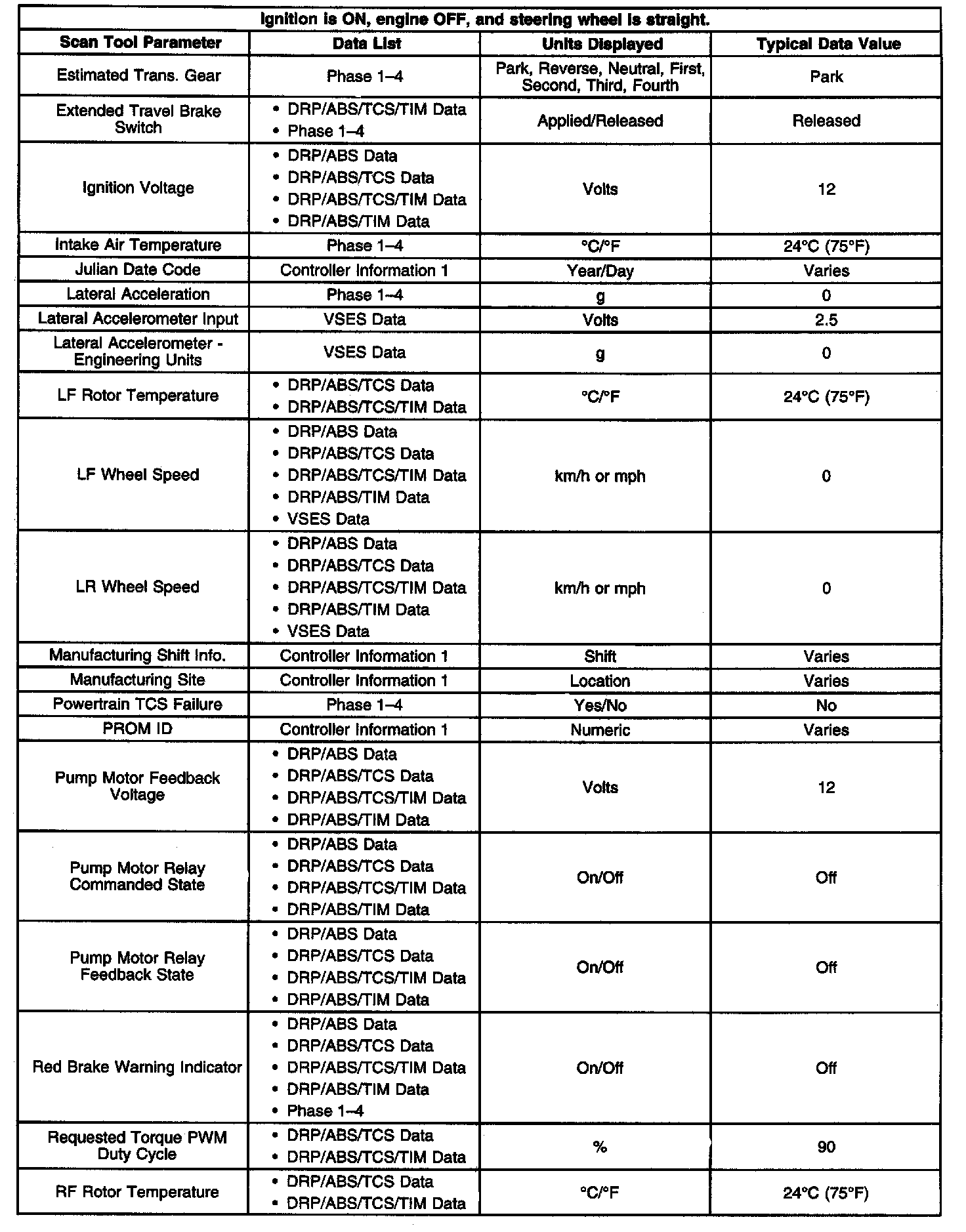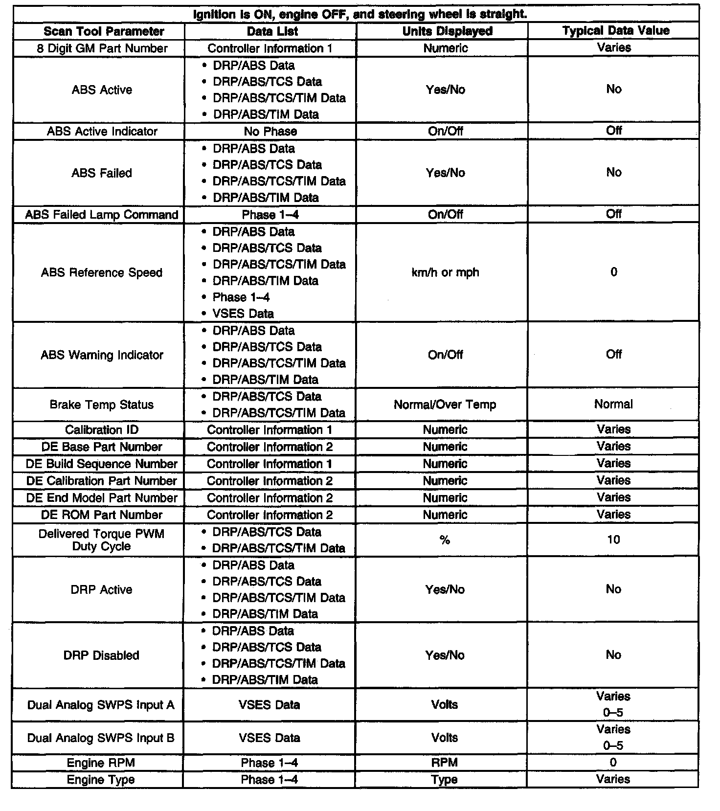 Scan Tool Data List