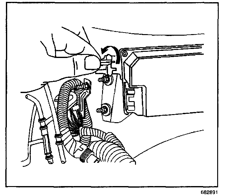 3. Twist the cruise control cable housing counterclockwise in order to release the cable housing from the module.