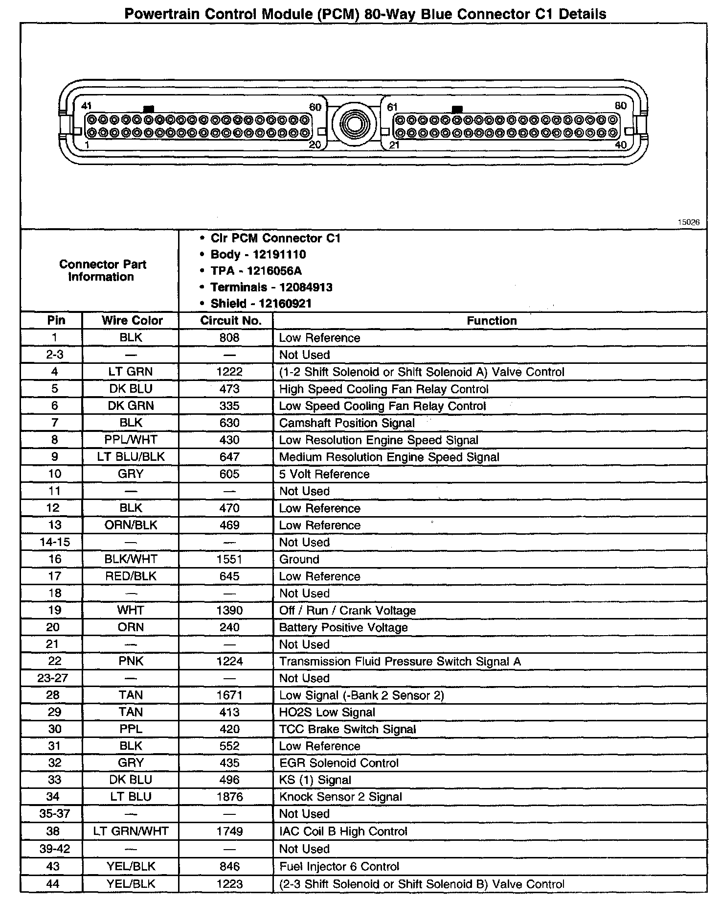 Powertrain Control Module (PCM) 80-Way Blue Connector C1 Details Part 1:
