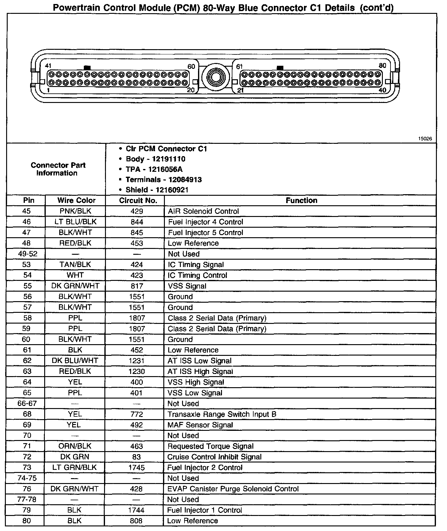 Powertrain Control Module (PCM) 80-Way Blue Connector C1 Details Part 2: