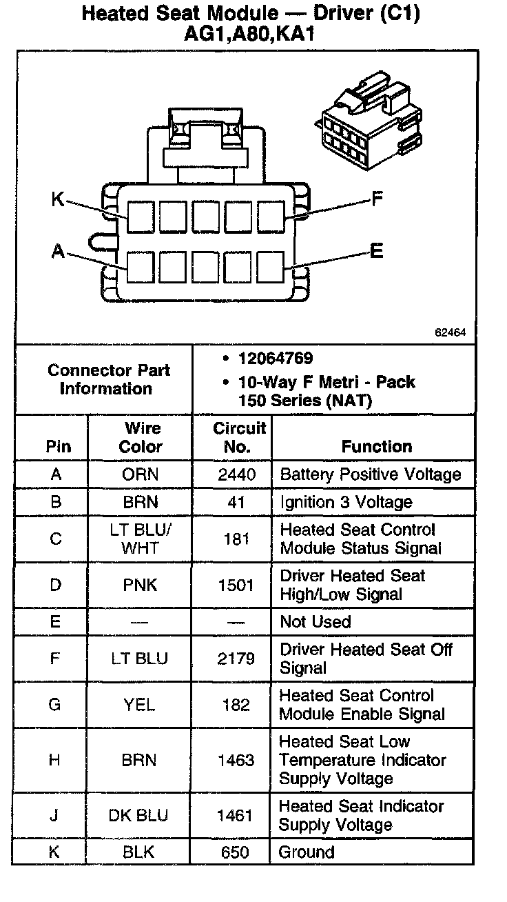 Heated Seat Module - Driver C2 (W/AG1, A80, KA1):