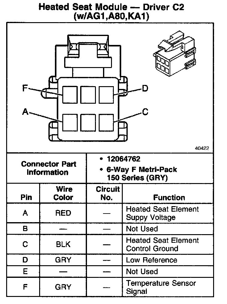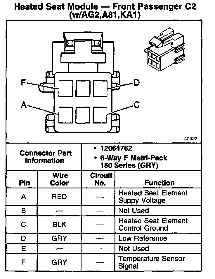 Heated Seat Module - Front Passenger C2 (W/AG2, A81, KA1):