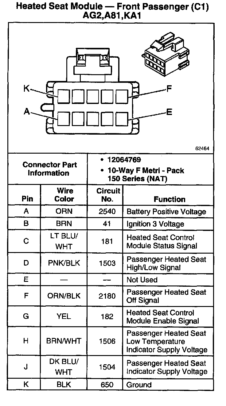 Heated Seat Module - Front Passenger (C1) AG2, A81, KA1: