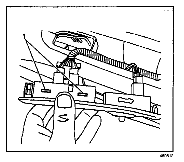 1. Install the passenger temperature control ensuring the tabs (1) are seated into the switch plate.
